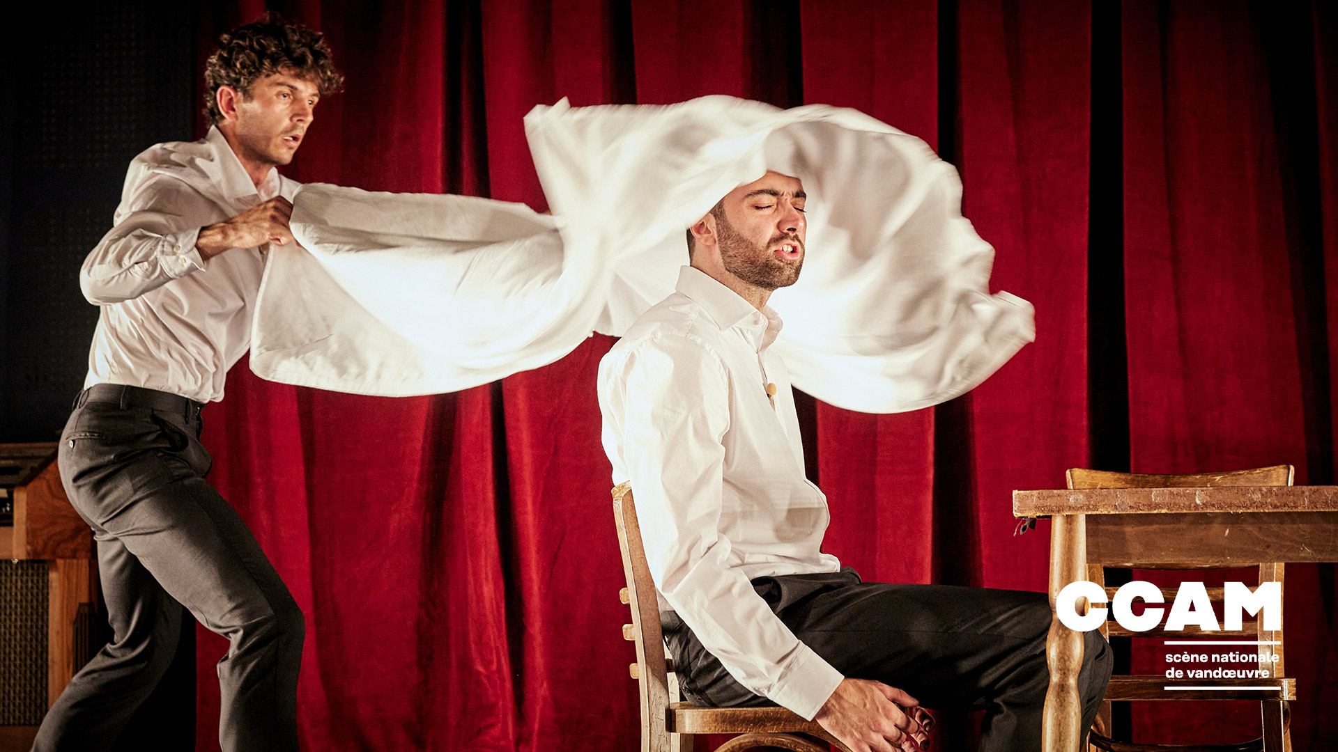 Un client commande un verre et c’est le drame. Grâce à cette scène répétée inlassablement par les performeurs Bert & Nasi, Tim Etchells nous présente une addition salée, entre cauchemar et humour anglais.
