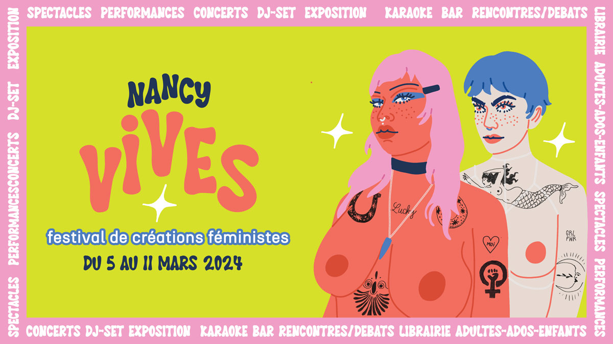 En 2024 encore, et pendant une semaine autour du 8 mars, journée internationale des droits des femmes, nous continuons notre chemin commun de déconstruction. On fait trembler les remparts, on décloisonne, on pète tout ! Nos burins seront spectaculaires ; nos tractopelles, musicales ; nos cisailles, textuelles ; nos bétonnières, rompues à la médiation. Et nos plans seront résolument féministes : vous faire entendre ces voix de femmes qui cassent la baraque, vous faire rire, chialer, chanter, danser, échanger et rêver. Pour partager avec vous différentes représentations des femmes, de leur corps et de leur discours et questionner l’identité de genre aujourd’hui. Et pour que vous n’ayez aucune chance de nous louper, on sera partout : salle Poirel, Théâtre de Mon Désert, Musée des Beaux-Arts, LEM, Memô, Goethe Institut, et même à l’Autre Canal parce que plus on est de folles et de fous, mieux on pense ! Alors, rejoignez-nous du 5 au 11 mars. On ne distribuera pas de roses à madame. C’est pas la fête des mères.